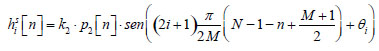 Además, el receptor de la invención contiene también un sistema paralelo (misma señal de entrada, y sumando las salidas), consistente en un banco de filtros con modulación seno, obtenido como :